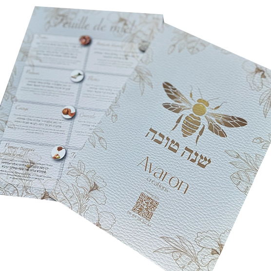 Cette feuille de miel en carton rigide est tres élégante, utiliée pour la fête de Rosh Hachana (nouvel an juif).