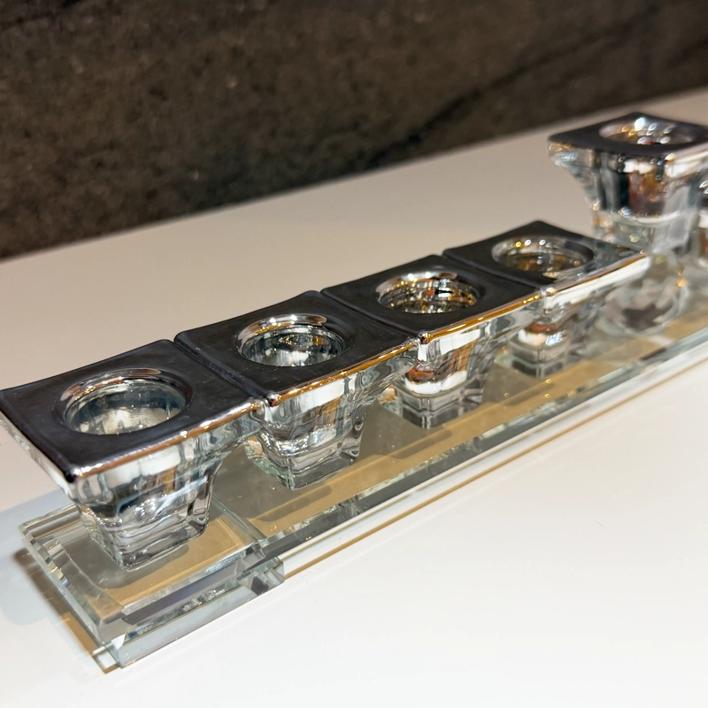 Magnifique ménorah argentée très élégante C'est un chandelier raffiné conçu pour célébrer les lumières de hannouka.Grace a sa finition et son design intemporel elle allie tradition , élégance et objet decoratif