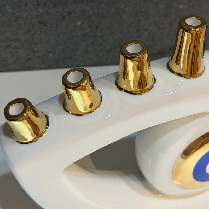 Sublimer vos fêtes de hannukah avec cette ménorah qui sort de l'ordinaire.C'est une pièce d'exception et lumineuse.C'est un chef d'œuvre décoratif qui attire le regard .C'est une édition limitée.